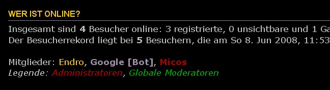 Die Google-Bots kann der Admin des Forums (also Micos) im Administrativen Bereich ein- oder ausstellen. Ich denke sie sollten an bleiben, vielleicht verirrt sich ja so der ein oder andere Gidlensuchende auf dieses Forum hier.